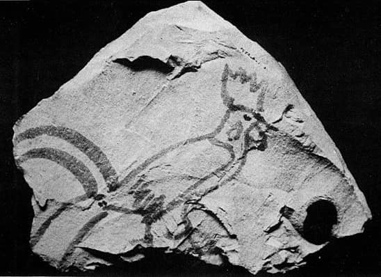 Dx: Gallo domestico dipinto su òstrakon della tomba di Tutankamen (1338 aC)