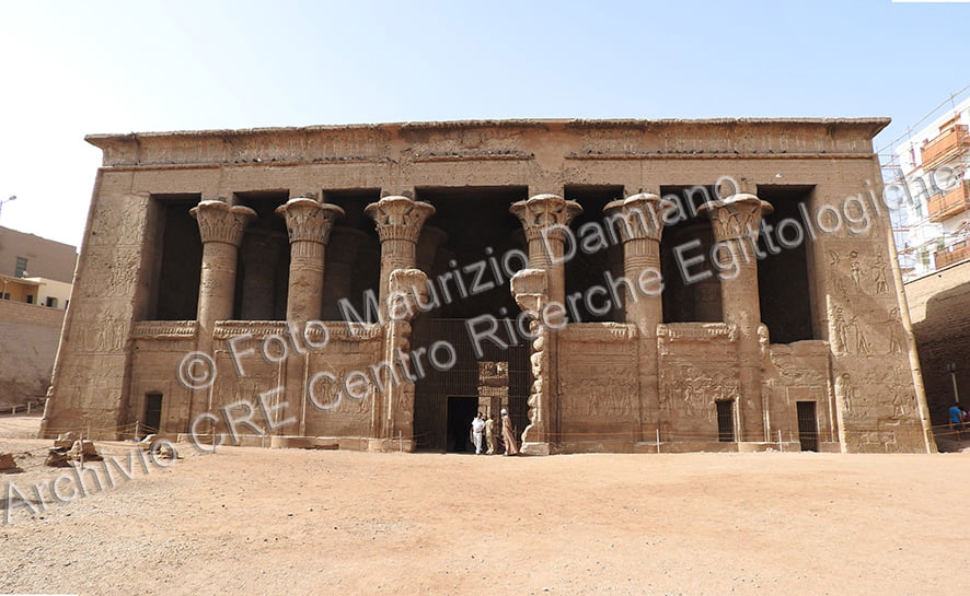 Immagine 5. Sala ipostila del tempio di Esna, esempio templare di epoca greco-romana. Il tempio egizio era esso stesso estensione del concetto di creazione. Era micro- e macrocosmo, rappresentando l’universo, la Creazione. In esso era il tumulo primevo come la foresta primordiale (la sala ipostila), la summa della creazione e l’essenza dell’Umano. E, soprattutto, Verbo trasposto in pietra, perpetuava con le sua esistenza la creazione e la Maat (© Archivio CRE/Maurizio Damiano).