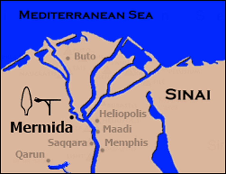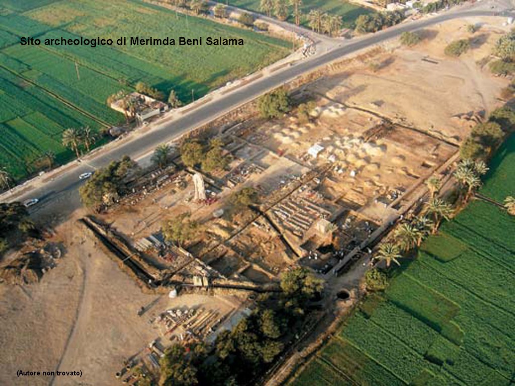 La più grande è Merimda Beni Salama, un importante insediamento neolitico situato sul margine occidentale del Delta, a circa 60 km a nord-ovest del Cairo. Dal sito di Merimda emergono le prime prove documentate di insediamenti nella Valle del Nilo, nella regione del Delta. I primi abitanti del sito, cacciatori raccoglitori che si erano convertiti ad una vita stanziale, pur continuando a praticare la caccia e la pesca, si erano già adeguati alla coltivazione di colture come l’orzo, il grano e il lino. Con l’addomesticamento degli animali si erano dotati di una fonte di provviste per la sopravvivenza. La vita si svolgeva in semplici capanne costruite con pali coperti di canne. In seguito le costruzioni diventarono più forti, case ovali con muri ricoperti di fango in cui un focolare e una lastra di pietra per macinare il grano erano le caratteristiche principali.