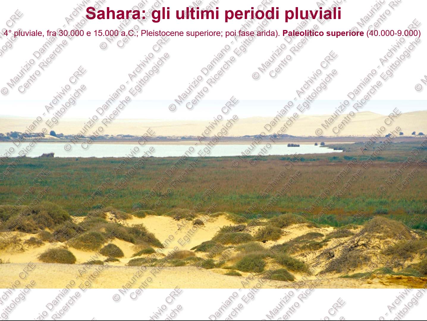 Nel corso dei millenni le condizioni climatiche nell’Africa del nord mutarono, la dove cresceva rigogliosa la vegetazione, e uomini e animali vivevano nell’abbondanza, iniziò un progressivo ed inarrestabile periodo di siccità, il deserto prese il sopravvento e le popolazioni si dovettero ritirare sempre più verso occidente dove il grande fiume Nilo aveva da tempo iniziato a scavarsi la valle molto più in basso del piano alluvionale di allora trasportando enormi quantità di detriti che andavano via via riempiendo il golfo del Mediterraneo nel quale si formerà in seguito il Grande Delta. Inesorabile il deserto continuava la sua avanzata, ovunque la sabbia rovente cancellava ogni possibilità di vita.