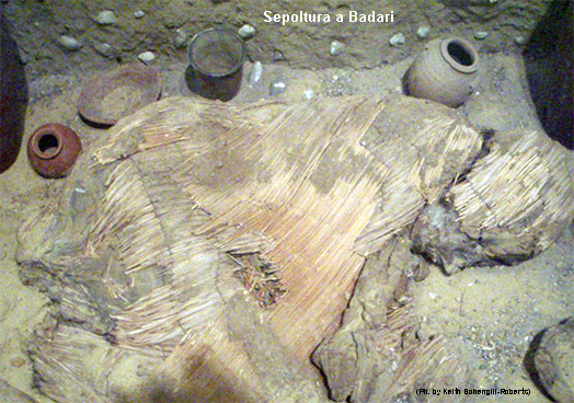 Il defunto veniva avvolto in stuoie di canne e papiro o pelli animali, adagiato in posa rannicchiata sul fianco sinistro con le mani a coprire il viso, quindi sepolto in buche ovali non molto profonde con alcuni oggetti, principalmente vasi in ceramica per corredo funebre.