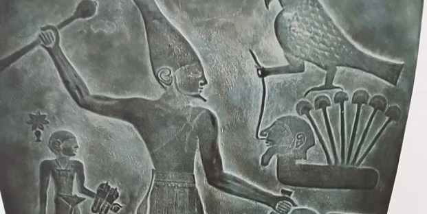 La tavolozza è databile intorno al 3100 a.C. , misura 64 cm in altezza per 42 di larghezza e 2,5 cm di spessore, su entrambi i lati presenta splendide raffigurazioni con arcaici geroglifici che lasciano sbalorditi per la loro perfezione considerando l’epoca in cui è stata realizzata, il periodo dei “Compagni di Horus”, i signori del Falco.