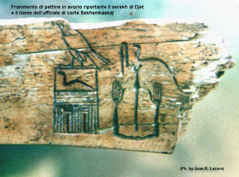 Oltre alla stele furono ritrovati utensili di rame e ceramica ed un pettine di avorio sul quale è riportato il nome di Horus Djet.