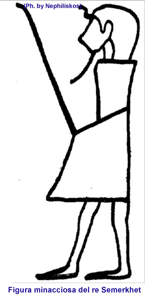 Come già accennato nel precedente articolo a proposito del re Anedijb, pare che Semerkhet abbia condannato alla “damnatio memoriae” sia il proprio padre che la regina Mer(it)neith, forse perché li considerava usurpatori, ma poiché chi la fa l’aspetti, il suo successore, Qa’a rispettò questi nomi e fece invece scalpellare quello di Semerkhet, dal che si presume che per lui l’usurpatore fosse Semerkhet.