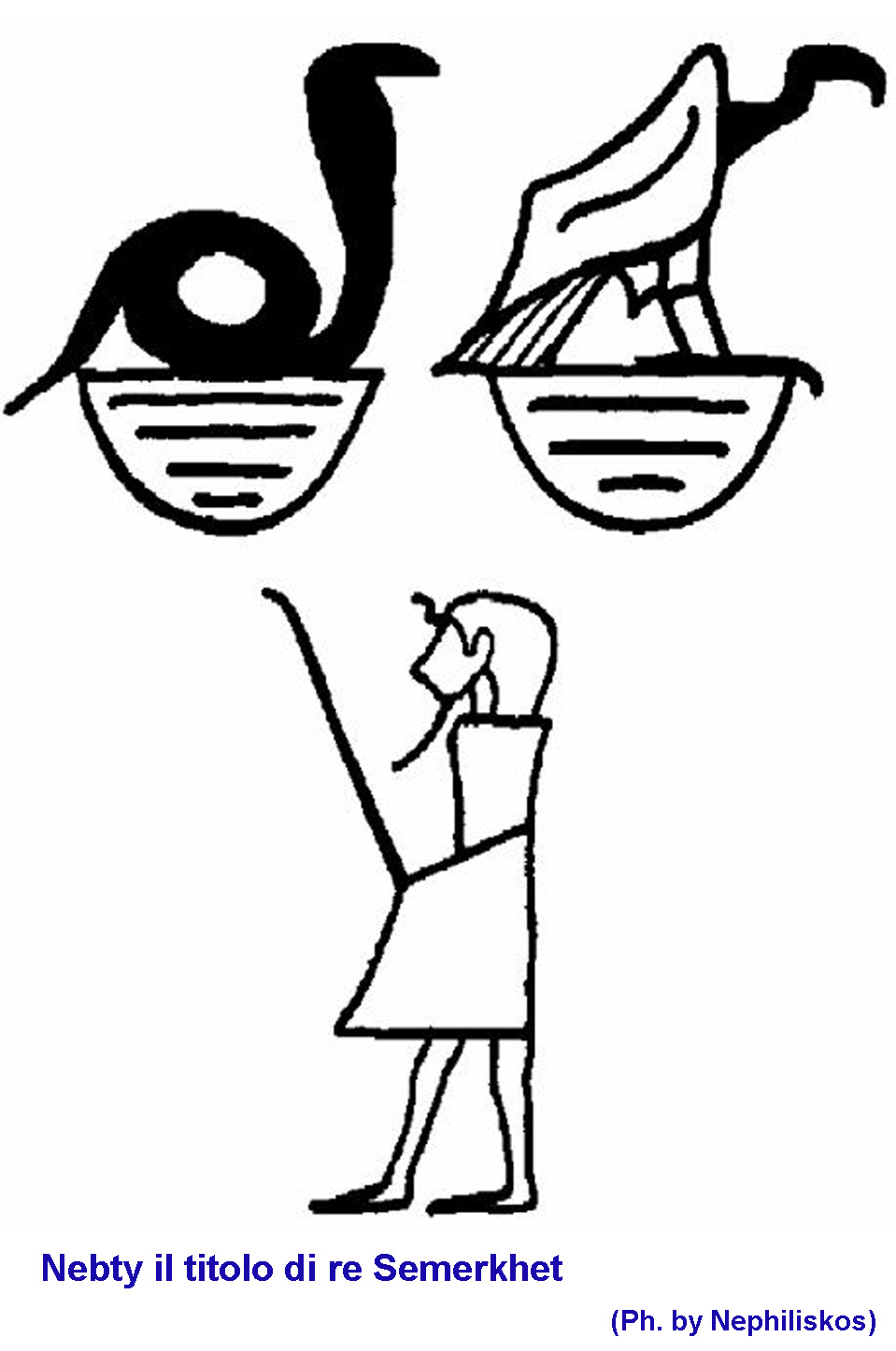 Contrariamente al suo predecessore, non si sa per quale ragione, Semerkhet non utilizzò il titolo di “Nebwy” (le due signore) ma fu il primo ad adottare il titolo nella sua forma definitiva: “Iry-Nebty” (guardiano delle Due Signore), un titolo che si riferisce alle dee Nekhbet e Wadjet, divinità protettrici degli antichi egizi, adorate da tutti dopo l’unificazione delle sue due terre, il Basso e l’Alto Egitto, forse si riteneva in contatto con le “Due Signore”.