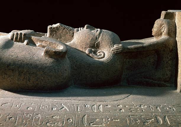 La vasca ha una decorazione in stile classico, con il registro inferiore inciso a ricordare la facciata di un palazzo con 14 porte, ciascuna delle quali reca il nome di una delle parti in cui fu smembrato il corpo di Osiride.