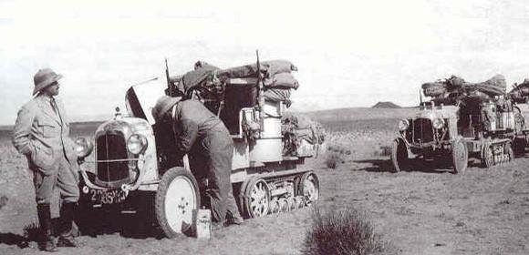 Il convoglio organizzato dal Principe doveva essere incredibile: egli utilizzava tre semicingolati che si era fatto costruire appositamente dalla Citroen (fu il primo ad avventurarsi nel deserto con veicoli a motore), affiancati da una carovana di oltre 500 cammelli che trasportavano i viveri ed il carburante (quei mezzi futuristici ne consumavano un litro al chilometro!) del quale aveva organizzato una serie di depositi lungo la rotta del ritorno.
