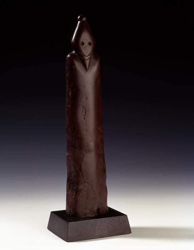 Accanto alle figure femminili spesso realizzate in terracotta, ritroviamo alcune effigi di uomini barbuti dalle linee semplificate e intagliate in vari tipi di pietra.