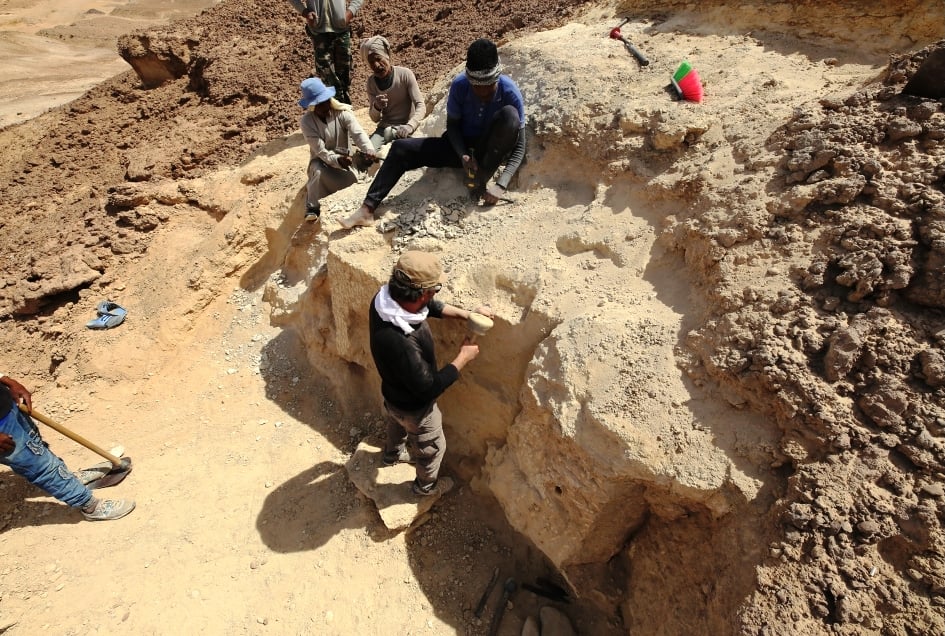 Nonostante sia stato parzialmente eroso dal vento e dalla sabbia, si distinguono ancora perfettamente le due trincee. Sul fondo sono presenti delle piccole piattaforme di circa 50 x 50 cm. distribuite su diverse altezze. Ciascuna di queste non era altro che una postazione di lavoro ed è apparso subito chiaro che, grazie a questo espediente, più operai potessero lavorare simultaneamente**. In questa zona di estrazione sono stati ritrovati diversi attrezzi litici, spesso simili a grossi ciottoli. Su alcuni era presente del verderame segno evidente che erano stati a contatto con il rame. Fungevano da incudini e percussori per ribattere e rendere tagliente la punta degli scalpelli. Questo procedimento, che doveva essere ripetuto frequentemente, permetteva di affilare la parte attiva dell’attrezzo. Pietre più grandi furono, probabilmente, usate come cunei per sostenere temporaneamente i blocchi in verticale o come punti d’appoggio per le leve, o, anche, per garantire la sicurezza nelle trincee orizzontali quando si operava in situazioni difficili.