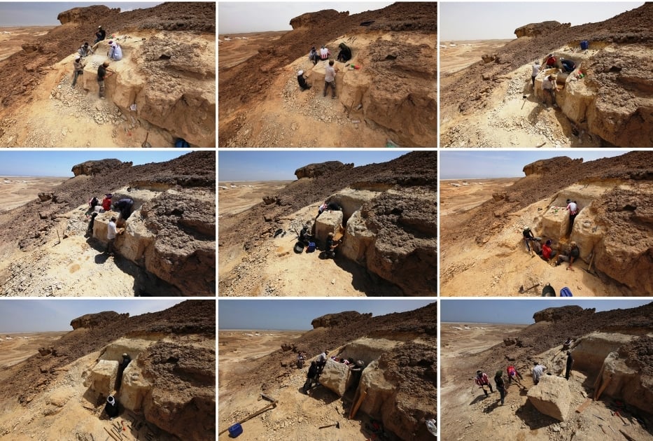** L’organizzazione e le dimensioni di questi spazi di lavoro sono perfettamente comparabili a quelli visibili sul fondo delle trincee di estrazione degli obelischi ad Assuan.