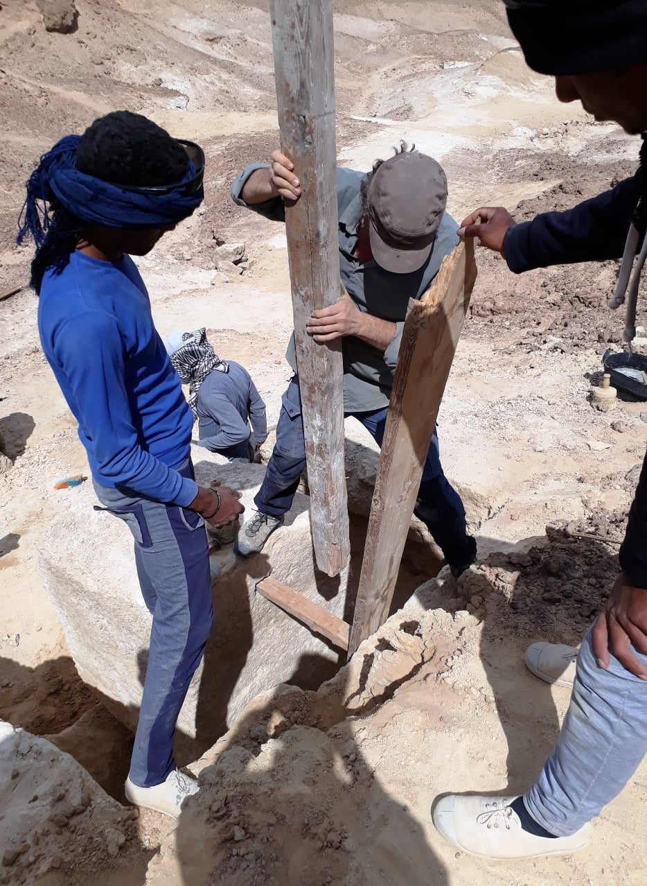 Una volta liberato il blocco sui 4 lati, si è presentato il problema di come staccare la faccia inferiore ancora solidale al banco roccioso. A Wadi el-Jarf non si sono trovate tracce di applicazione della tecnica con il legno bagnato descritta da Reisner, né indicazioni dell’utilizzo di cunei. Si è valutato che l’uso di legno gonfiato attraverso l’acqua fosse poco attuabile per semplici ragioni logistiche e, pertanto, si è concluso che gli antichi dovettero impiegare soluzioni più semplici. Il procedimento sicuramente più pratico e conveniente doveva essere quello di sfruttare le proprietà geologiche del banco come, ad esempio, raggiungere lo strato argilloso. In questo caso, la sola difficoltà era quella di scegliere con discernimento ed in anticipo il giacimento. Quando ciò era possibile è indubbio che gli antichi egizi privilegiassero questo metodo che era di gran lunga il meno laborioso. Altrimenti, bisognava procedere in modo diverso scavando una trincea nella parte sottostante, come dimostra il blocco di cui abbiamo scoperto l’impronta nella cava e il cui distacco non poté beneficiare di questa agevolazione.