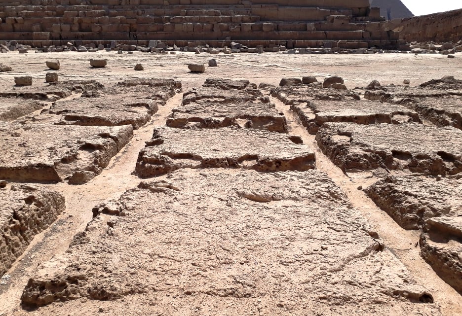 Le nostre conoscenze sulle tecniche estrattive dei blocchi di calcare relative all’Antico Regno sono piuttosto limitate e si fondano essenzialmente su evidenze legate alla piana di Giza, dove sono tuttora visibili numerosi giacimenti. Qui, sul lato nord-orientale della piramide di Chefren (Immagini n. 1-2), ma anche in prossimità dell’angolo nord-occidentale della piramide di Micerino, sono evidenti resti di estrazione che formano una specie di scacchiera e ci forniscono un’ idea del metodo utilizzato, all’epoca, dai cavatori.