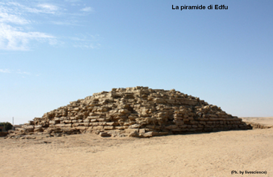 E’ stata scoperta nel sito archeologico di Edfu, quasi 800 chilometri a sud del Cairo dove 4.600 anni fa si stagliava, magnifica con i suoi gradoni. la piramide di Edfu che un attento lavoro di scavi ha finalmente riportata alla luce. Gli egittologi erano a conoscenza dell’esistenza di questa costruzione ma nessun archeologo aveva mai scavato nel sito. Nessuno però pensava ad uba piramide, gli abitanti del luogo credevano si trattasse della tomba di uno sceicco musulmano locale.