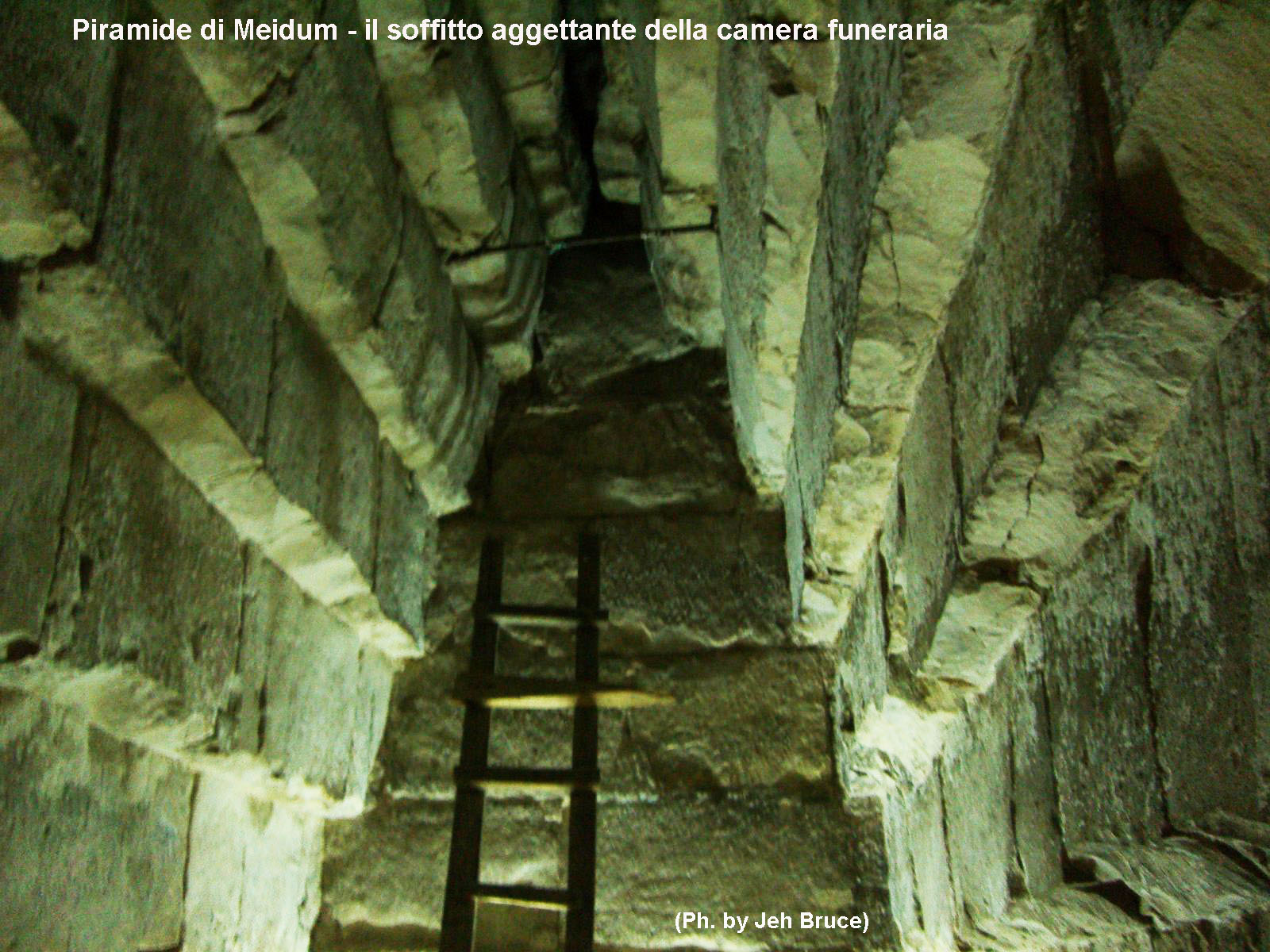 Il soffitto a volta aggettante è costruito con enormi blocchi di calcare che vanno via via restringendosi fino al culmine, cosa che ha permesso di reggere l’enorme peso della massa sovrastante. Questa tecnica, che ricalca l’architettura in mattoni in uso fin dall’età arcaica, la troveremo in molte altre piramidi successive. Il primo archeologo ad entrare nella piramide fu Gaston Maspero il quale rinvenne in un angolo della camera alcune travi di legno e della corda. In un primo tempo si pensò a resti lasciati dai saccheggiatori ma alcuni egittologi avanzarono l’ipotesi che si trattasse di materiale che avrebbe dovuto servire ai costruttori per issare il sarcofago del sovrano fin nella camera.