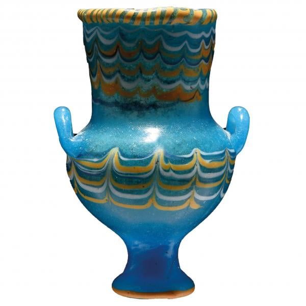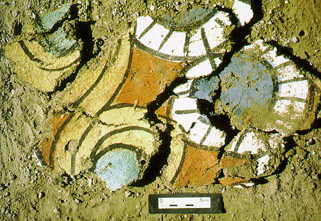 Un motivo decorativo in pasta vitrea (notate l’incredibile lavorazione): Malqata era uno dei centri più rinomati dell’Egitto per la produzione di manufatti in vetro, che venivano anche esportati all’estero.