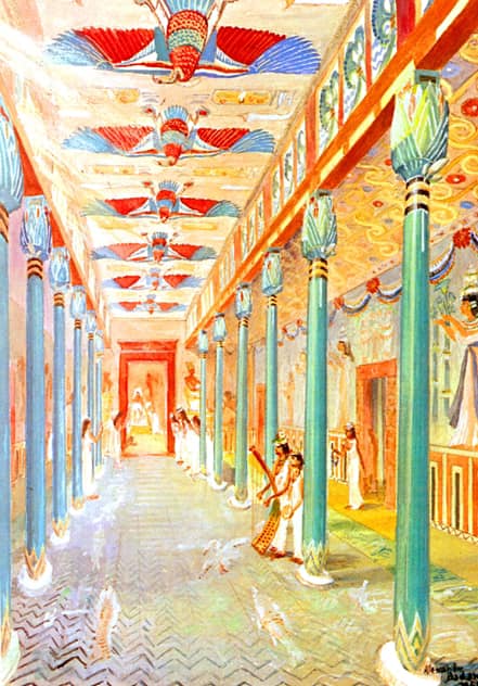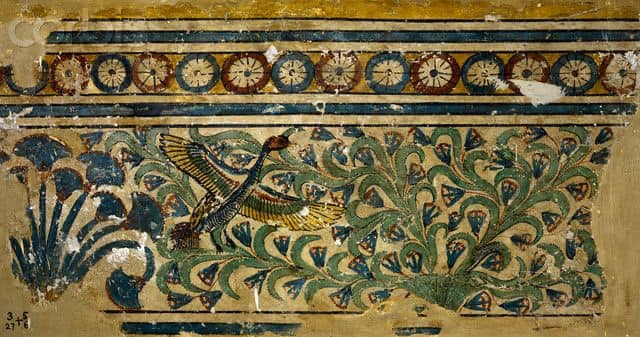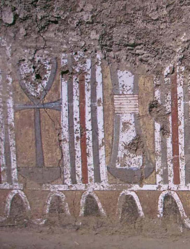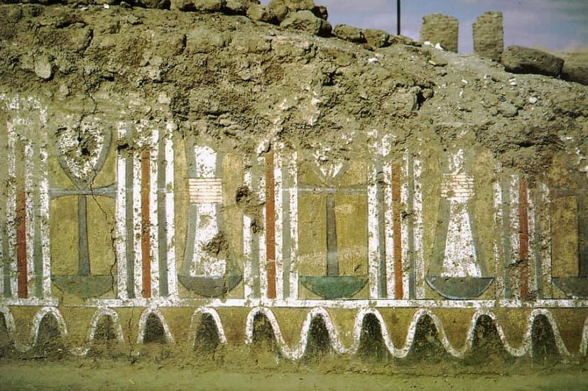 I pavimenti erano dipinti in modo da rappresentare il Nilo brulicante di pesci e uccelli. Alcune stanze erano decorate con piastrelle a colori vivaci con fiori, vigneti e grappoli, uccelli e pesci, geroglifici che offrivano protezione, salute e buona sorte.