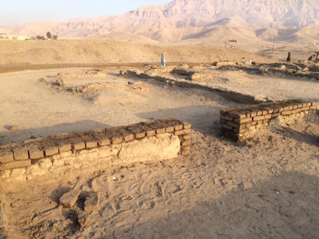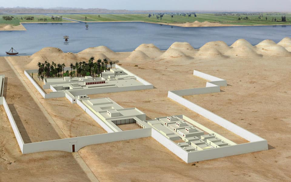 Una strada rialzata collegava il palazzo al tempio di Milioni di Anni di Amenhotep III (il tempio con i colossi di Memnone).