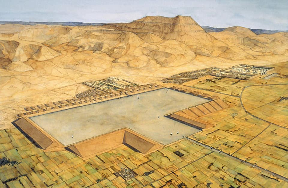 All’interno del palazzo il faraone fece costruire un grande lago a forma di T, oggi noto come Birket Habu, che collegava il palazzo al Nilo ( e quindi metaforicamente all’Egitto) e che si trovava all’ingresso del palazzo. Su questo lago si trovava la barca reale dorata del faraone, chiamata l’“Aton splendente” che veniva utilizzata nelle festività religiose e di stato.