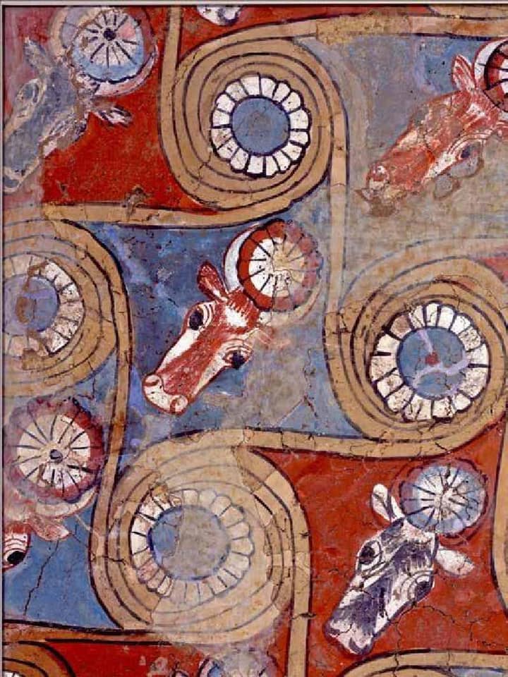 I muri dell’harem presentavano motivi floreali con uccelli e vitelli bianchi e rossi.