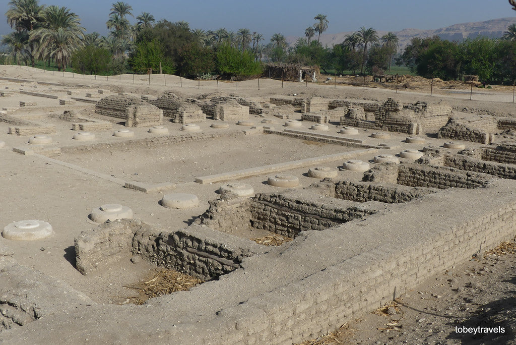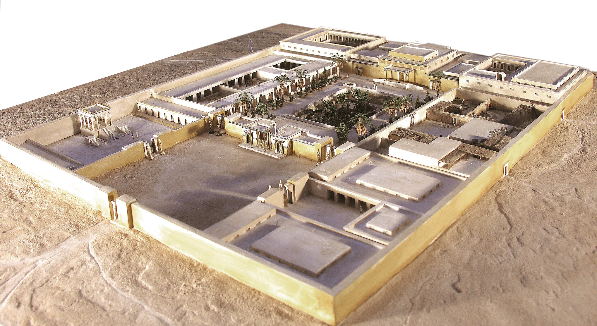 La corte interna principale è caratterizzata da un ampio avallamento rettangolare a livello del suolo, con una fila di fosse d’albero sul lato nord (riconoscibili perché gli egizi erano soliti piantare alberi in fossa che riempivano di terra fertile, molto più scura).