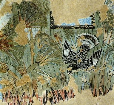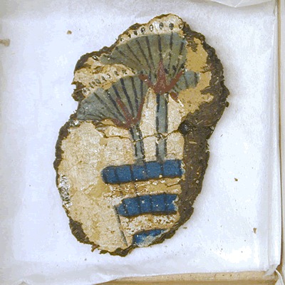 La decorazione di questa struttura era uniforme: sopra una fascia di riquadri neri e blu si alternavano bande blu e rosse, separate da una sottile striscia bianca e sormontate da un fregio di uccelli kheker; la parte di parete superiore, di colore giallo, recava figure di uomini e animali, soprattutto uccelli e pesci. I soffitti erano, a quanto sembra, dipinti con un pergolato di vite. Anche i pavimenti erano decorati con scene della natura.