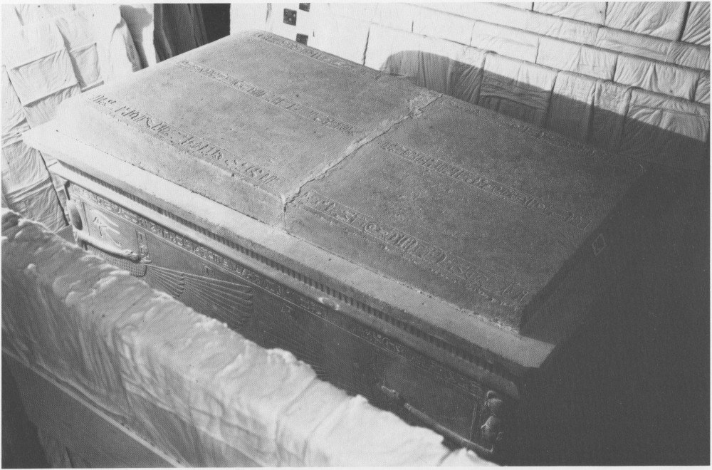 La testa della cassa è posizionata ad ovest in modo che la mummia del Faraone guardasse verso oriente. La forma spiovente del coperchio ricorda quella del secondo e terzo sacrario (“Sacrari del Sud” o “pr-wr”) anche se è meno accentuata.