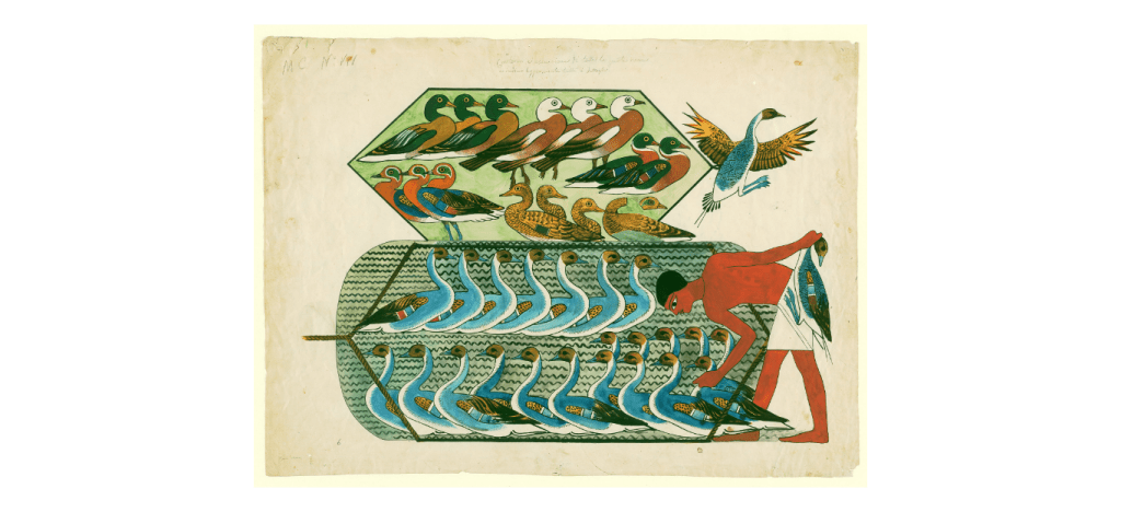 La caccia ad anatre, oche e quaglie era riservata alla nobiltà e ne abbiamo molte testimonianze nelle tombe dei nobili tebani.