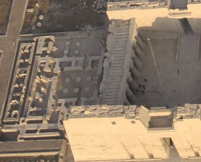 Esso sorgeva all’interno del muro ma all’esterno del tempio, nello spazio libero tra il primo e il secondo pilone, aveva pianta quadrata ed era realizzato in mattoni crudi, come tutti gli edifici residenziali dell’epoca, salvo la facciata, che era in pietra in quanto costituiva anche una delle pareti esterne del primo cortile del tempio, che richiedeva un materiale più pregiato e duraturo.