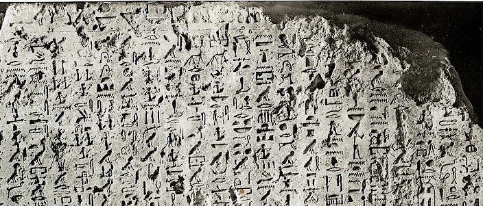 Tutta la parte evidenziata in neretto è quella che più ci interessa riguardo alle problematiche relative al trasporto dei materiali durante l’Antico Regno. Uni ci informa del carico di elementi architettonici in granito, di un Pyramidion e di un sarcofago in grovacca, del trasporto via fluviale, anche per lunghissime distanze, e addirittura dello scavo di canali in Alto Egitto per velocizzare la consegna di grandi blocchi di granito.