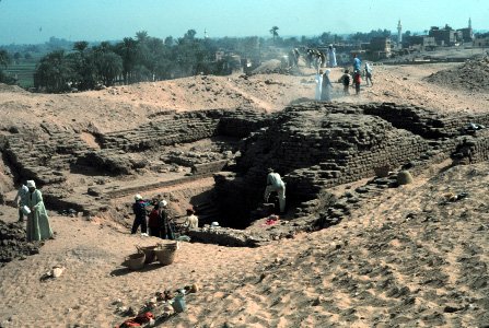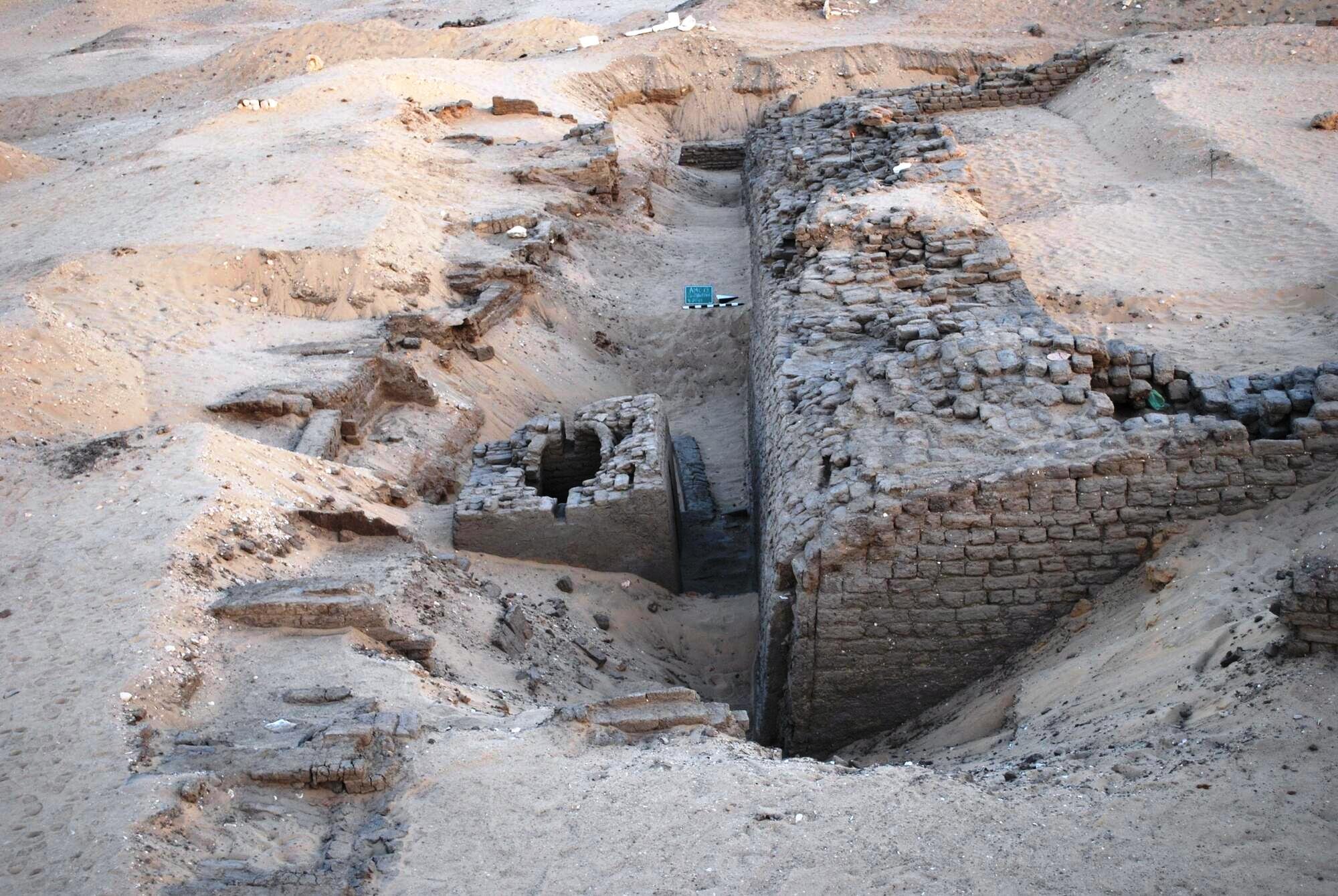 <<A nord del complesso di Nhty si trova una struttura ancora più grande ed è qui che abbiamo trovato la prova più convincente che si trattasse dell’ultima dimora di Weni il Vecchio. Nel 1996 avevamo documentato la presenza di una costruzione in mattoni di fango lunga 16 metri sulla sua parete nord; gli scavi hanno rivelato che si trattava di un imponente recinto di 29 metri di lato, spesso 3 metri e alto oltre 5 metri.