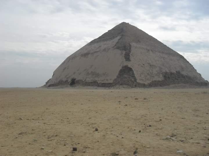 Ma durante la costruzione, quando ormai la struttura era quasi a due terzi della sua altezza prevista, gli architetti decisero improvvisamente di ridurre oltre 10° la pendenza degli angoli portandola da 54°27’44” a 43°22′ con una conseguente riduzione di 23,5 metri dell’altezza finale, il che la colloca comunque al quarto posto per dimensioni tra tutte le piramidi d’Egitto.