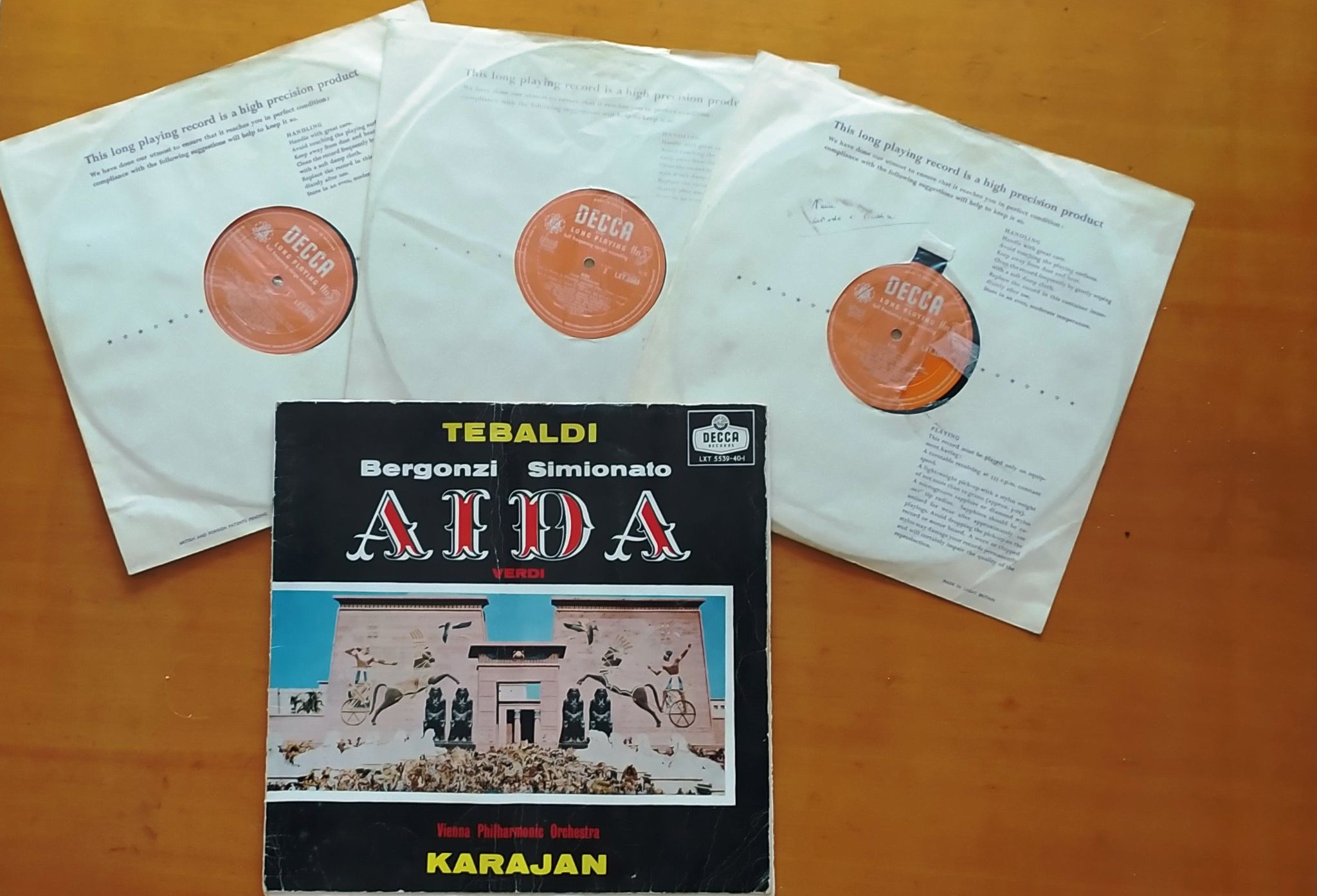 Siamo intorno al 1962-63, quell’irripetibile momento di boom economico, in cui usciti da un dopoguerra di disastri e ricostruzioni, si cominciava a nutrire un giustificato ottimismo verso il futuro. Avevo sette, forse otto anni ed in casa c’era un monumentale radiogrammofono della Greatz, rigorosamente a valvole e rigorosamente mono. A questo si accompagnava un discreta collezione di dischi (molti dei quali ancora a 78 giri) per lo più canzoni napoletane classiche e microsolchi a 45 giri dei cantanti in voga al momento: Mina, Tony Dallara, Joe Sentieri, Milva, Dalida ecc. ecc. (lo so, sembra che vi stia parlando del paleozoico, ma vi assicuro che provo una tenerezza inaudita nel ricordare quei tempi). Bene, chissà come e perché, faceva compagnia a questi esemplari di musica leggera, una piccola ma tutt’altro che disprezzabile raccolta di musica colta. Opere, liriche, per lo più, tra cui edizioni della Angel’s Record di Bohéme e Tosca con Maria Callas e Giuseppe Di Stefano e soprattutto lei: una bellissima Aida edita nel 1959 dalla Decca, con Renata Tebaldi, Carlo Bergonzi, Giulietta Simionato e la mitica Orchestra Filarmonica di Vienna diretta dall’altrettanto mitico Herbert von Karajan.
