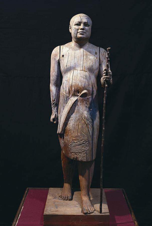 A partire dalla IV Dinastia, accanto alla grande statutaria di pietra, comincia ad affermarsi anche la scultura in legno, materiale più duttile, ma assai deperibile.