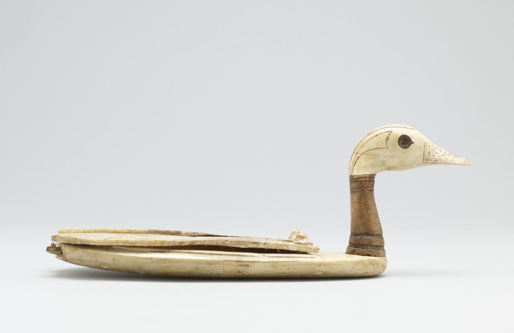 La coda dell’ anatra è legata alla fertilità e alla rigenerazione, come a simboleggiare che il trucco contenuto in un oggetto avente queste sembianze avrebbe aiutato il suo utilizzatore a compiere una vera e propria magia di ringiovanimento e rigenerazione. Il reperto è datato al Nuovo Regno.