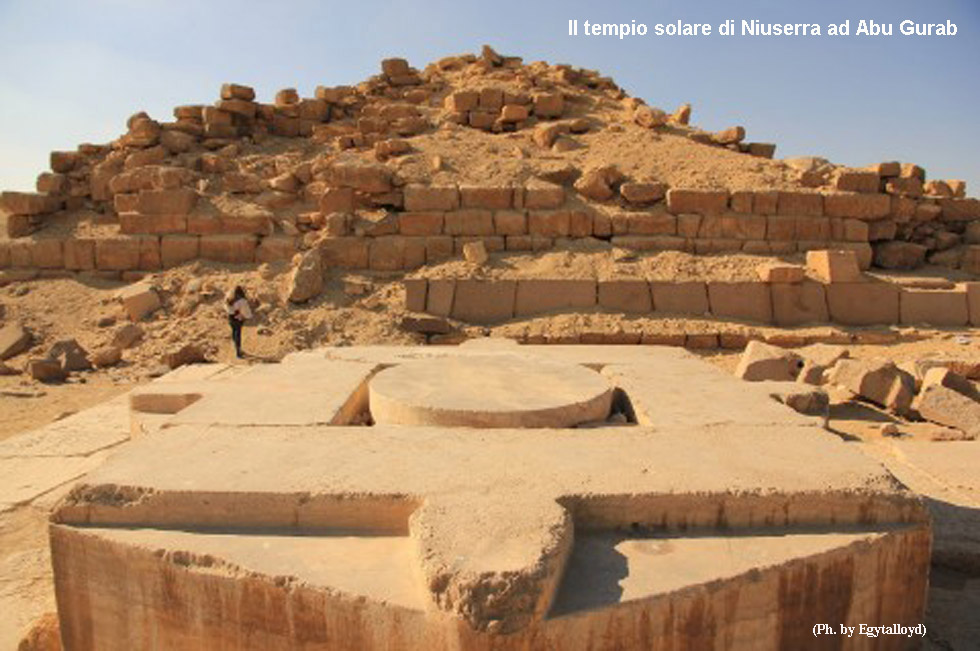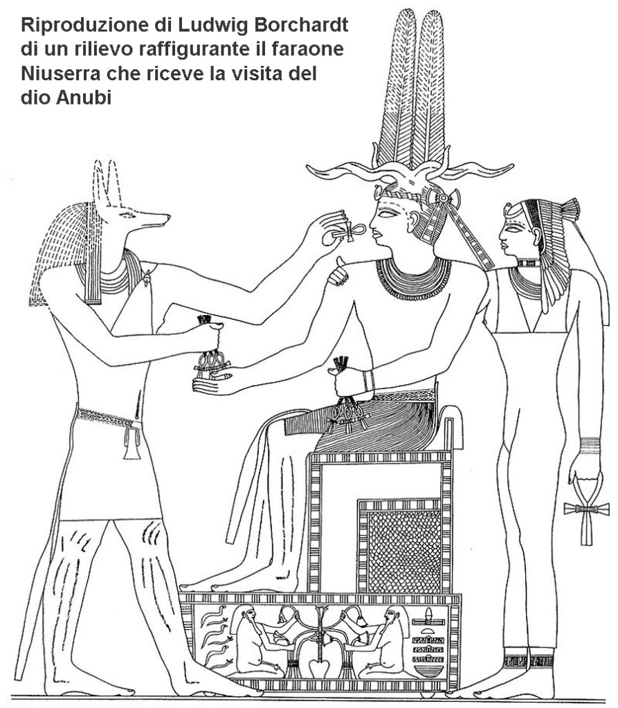 Torniamo alla piramide di Niuserra, il cui nome era: “Eterni sono i luoghi di Niuserra”, questa si presenta con un nucleo formato da sette gradoni di calcare proveniente dalle cave ubicate a metà strada fra le piramidi di Abusir e la piramide a gradoni di Djoser a Saqqara. L’ingresso era situato sotto il livello del suolo a metà della parete nord, il quel punto avrebbe dovuto comparire la cappella votiva che però non fu trovata, anche se, ad onor del vero, Borchardt non l’ha neppure cercata. L’ingresso dava accesso ad un corridoio rivestito di fine calcare bianco con rinforzi di blocchi di granito rosa all’inizio e alla fine. Circa a metà del corridoio si trovava uno sbarramento formato da due blocchi di granito a caduta. Il corridoio aveva un andamento irregolare, scendeva fino ad un vestibolo, poi girava leggermente verso est assumendo una maggiore pendenza. Alla fine sbucava nell’anticamera e, da questa, alla camera funeraria.