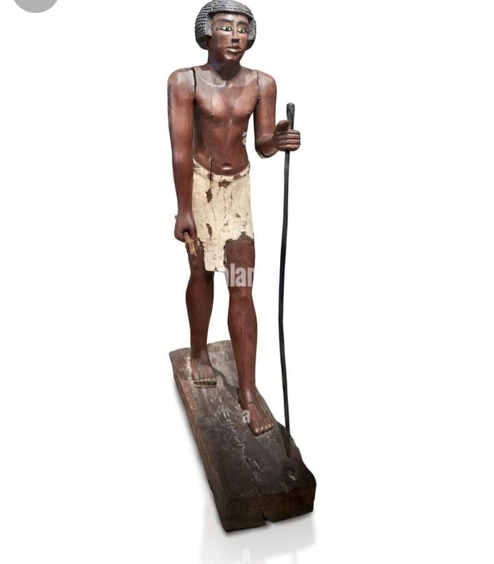 Gli scavi di Schiaparelli ad Assyut portarono alla luce delle importanti tombe che vanno dalla nona alla dodicesima dinastia, alcune delle quali dotate di ricco corredo funerario; fra queste vi è la sepoltura di Shepes, in cui si trovava la statua della fotografia che raffigura il defunto in piedi con bastone e csettro sekhem.”
