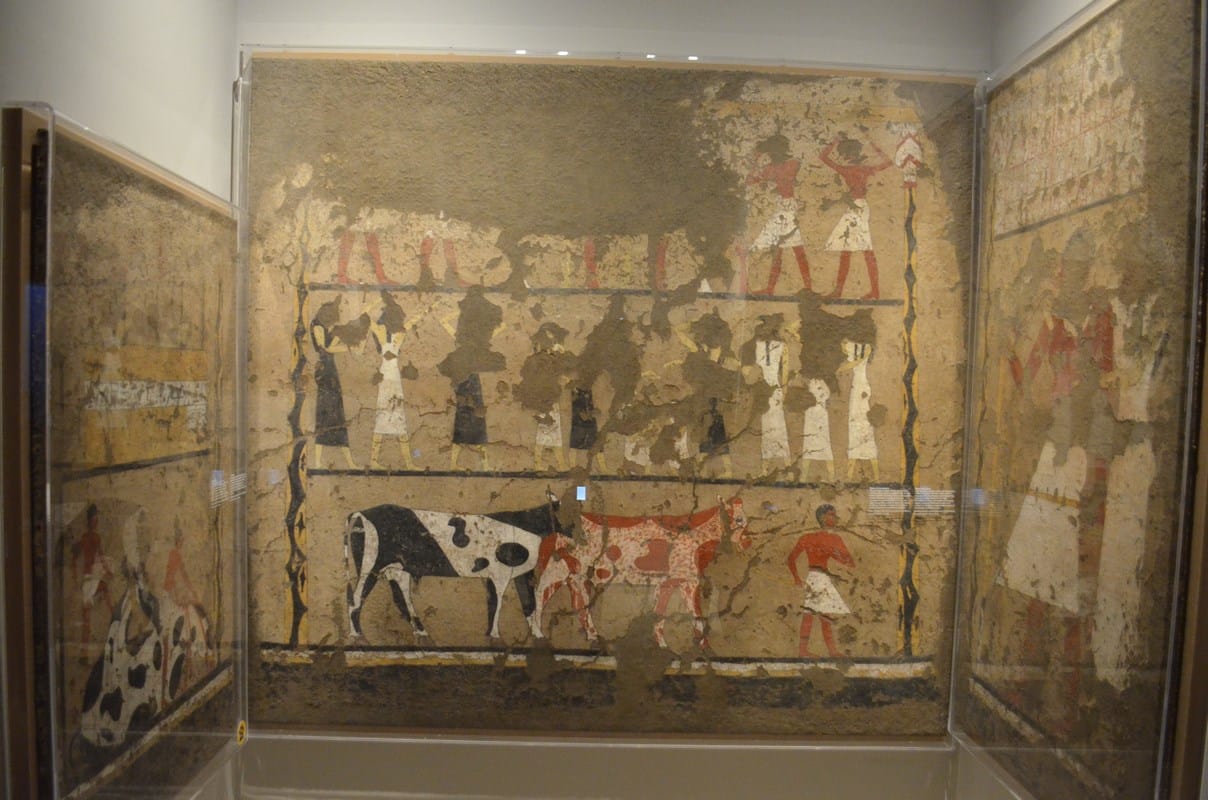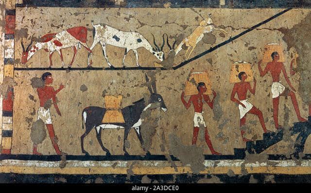 Quest’opera mostra già i segni dell’arte del primo periodo intermedio; lontane dalla perfezione formale dell’epoca delle piramidi, le figure appaiono stilizzate e rigide, ma mostrano già i segni innovativi della nuova epoca: la parte di superiore del corpo è di dimensione decrescente dalla prima alla terza figura per suggerire un effetto ottico di movimento e avvicinamento Inoltre per apprezzare l’effetto la veduta non è più frontale ma di scorcio.