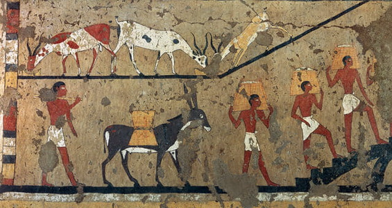 Quest’opera mostra già i segni dell’arte del primo periodo intermedio; lontane dalla perfezione formale dell’epoca delle piramidi, le figure appaiono stilizzate e rigide, ma mostrano già i segni innovativi della nuova epoca: la parte di superiore del corpo è di dimensione decrescente dalla prima alla terza figura per suggerire un effetto ottico di movimento e avvicinamento Inoltre per apprezzare l’effetto la veduta non è più frontale ma di scorcio.