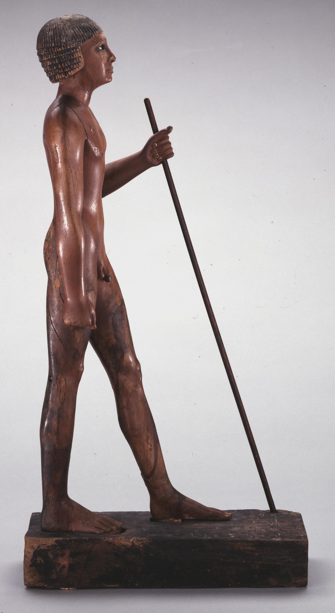 Il bastone e lo zoccolo sono stati lavorati separatamente e la statua stessa è composta da diversi pezzi.