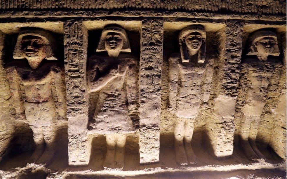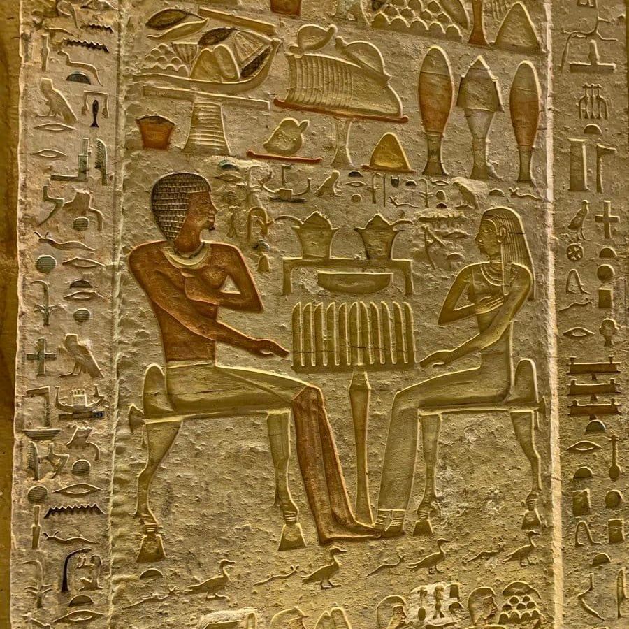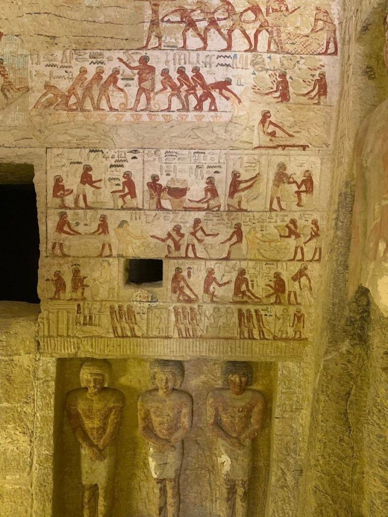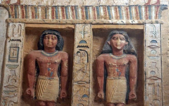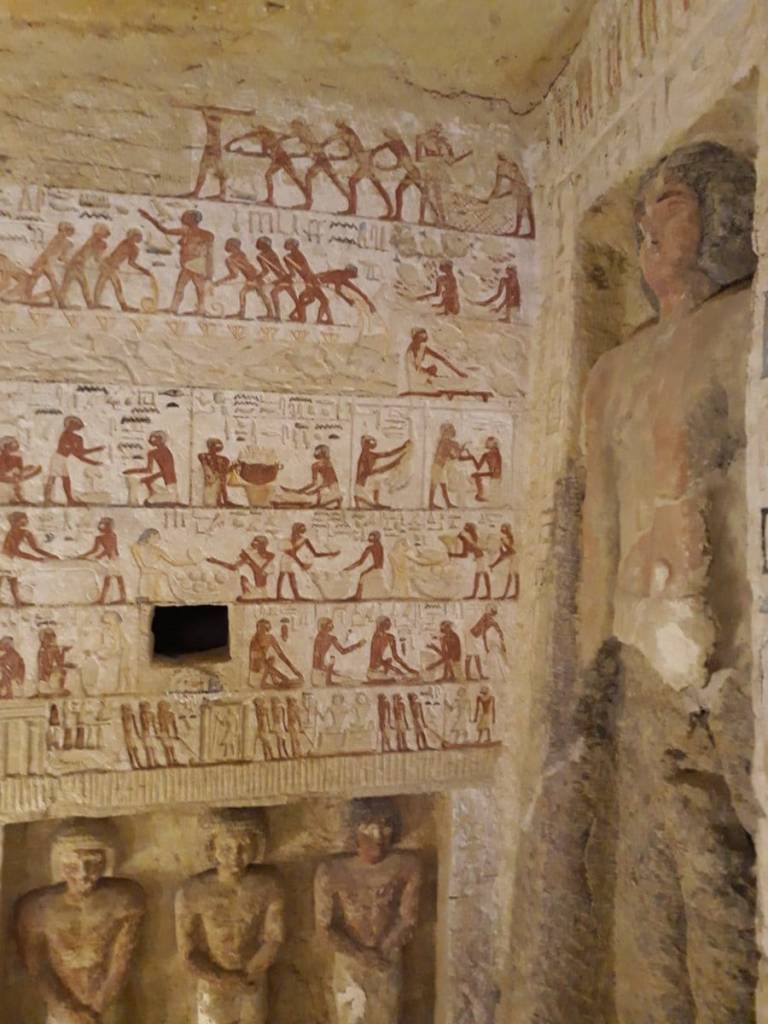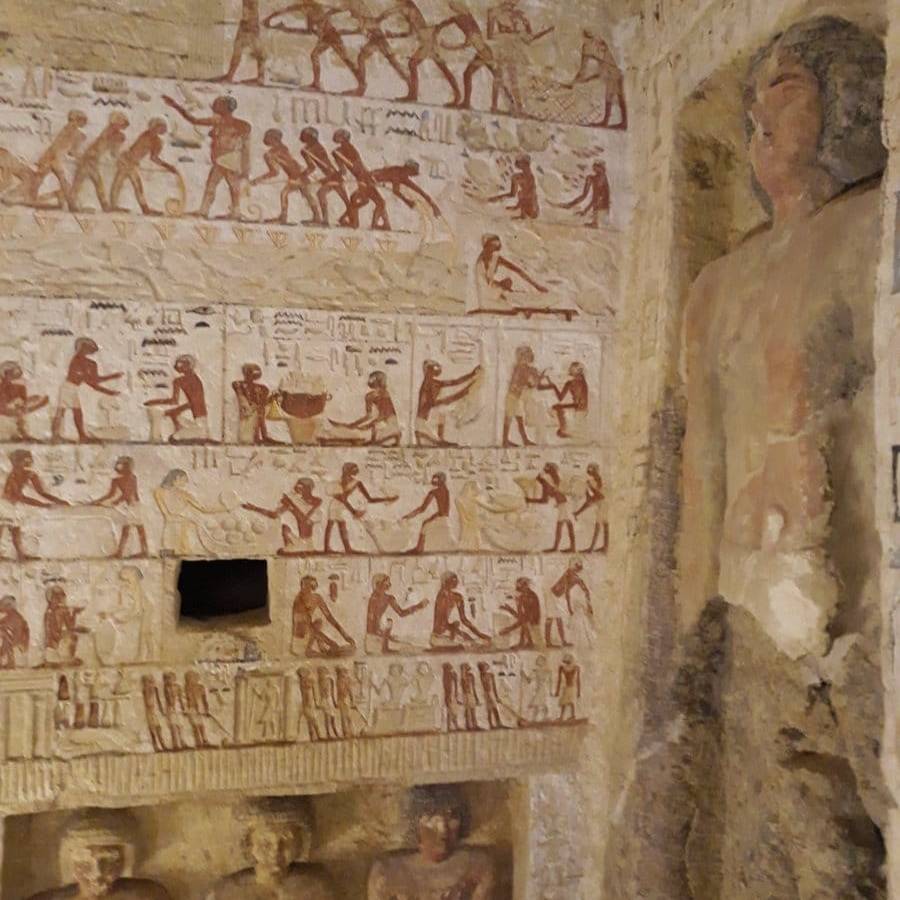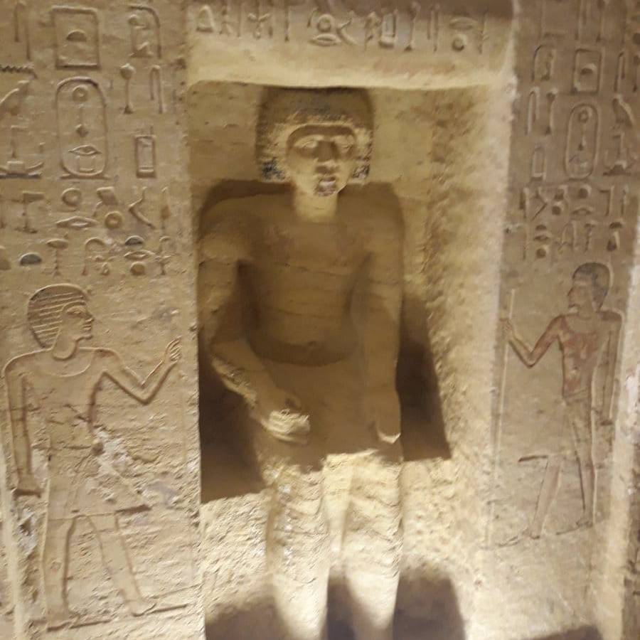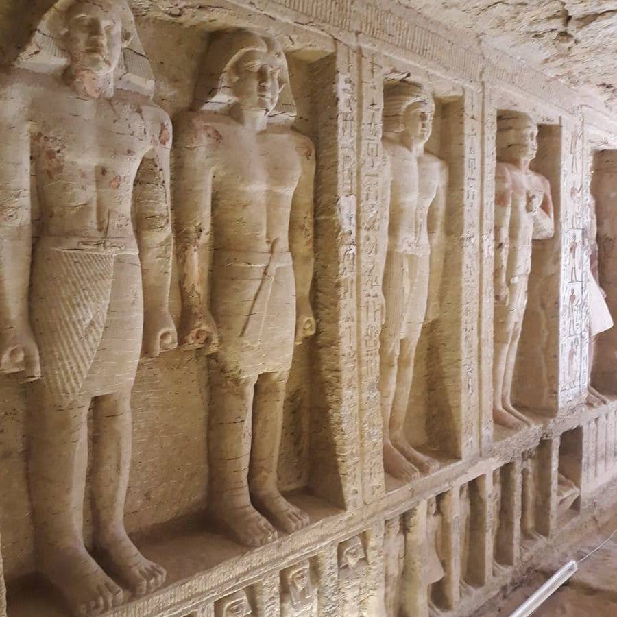 Numerose nicchie, con statue in rilievo, raffigurano il defunto il ed i suoi parenti più stretti: la moglie Weret Path, la madre Merit Meen e i figli.