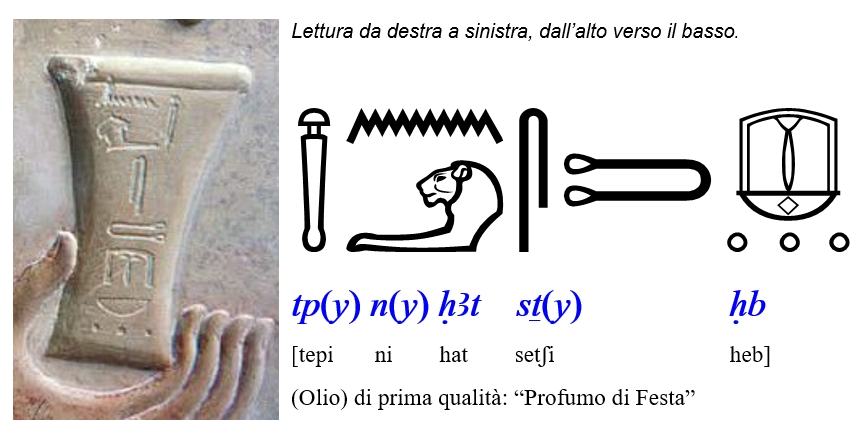 Al fine di capire con precisione cosa sta annusando Ptahhotep, per nostra fortuna il vaso che il visir tiene con la mano sinistra supporta una scritta geroglifica.