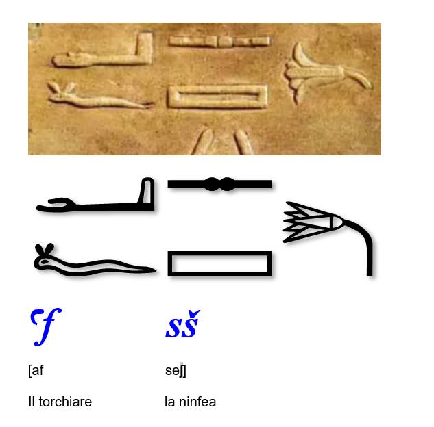 Il quinto segno, un fiore chiuso, è un determinativo e quindi è muto e non si legge.