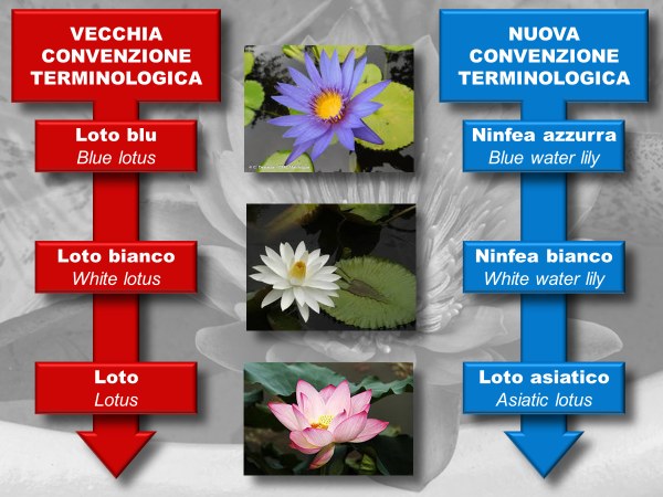 Trattando l’argomento delle ninfee nilotiche, è innanzitutto doveroso chiarire una secolare confusione terminologica fra ninfea e loto.