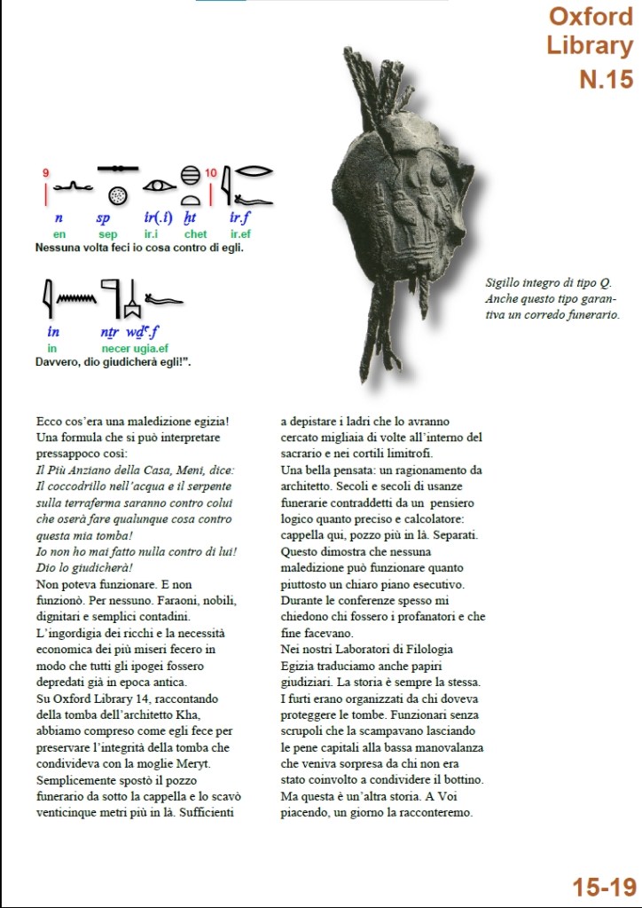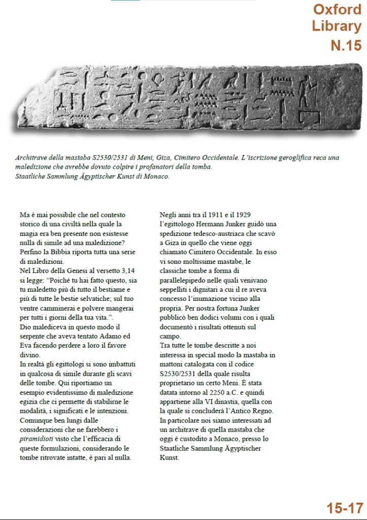 Poiché abbiamo parlato delle maledizioni egizie, e in particolare quella famigerata di Tutankhamon, vorrei documentare qui un’altra parte del discorso.