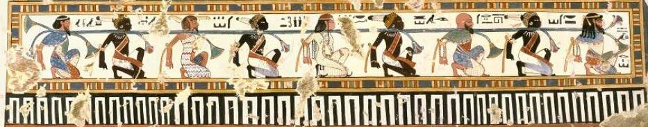 Tomba di Amenhotep detto Hui – TT40 – Cominciò la sua carriera con Amenhotep III e la concluse sotto Tutankhamon, che lo creò vicerè della Nubia. Nei rilievi parietali della sua tomba è raffigurato un viaggio che fece per nave fino a quel paese lontano, dal quale portò i tributi che i capi locali mandavano al Faraone. Tra di essi gli schiavi o prigionieri rappresentati nell’immagine. Particolare è l’immagine della donna, che tiene per mano due bambini e ne tiene una terza in una sacca sulle spalle. Questa bambina ha dei curiosi codini sulla testa.