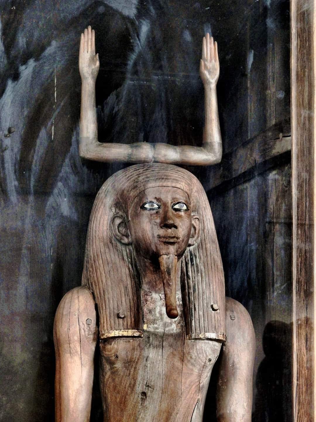 Tale è la funzione della raffinata statua lignea del sovrano Auibra-Hor, sul cui capo svettano due braccia aperte, che rappresentano il segno geroglifico usato per indicare il ka.