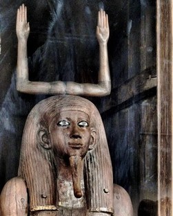 Tale è la funzione della raffinata statua lignea del sovrano Auibra-Hor, sul cui capo svettano due braccia aperte, che rappresentano il segno geroglifico usato per indicare il ka.