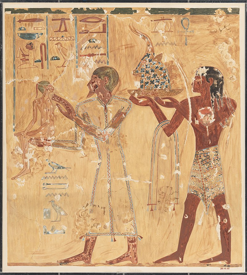 Una scena nella tomba di Amenemhab (TT85) mostra delegazioni siro palestinesi che presentano al sovrano prodotti diversi ma anche alcuni bambini; analogamente nella tomba di Menkheperraseneb, capo di Tunip (TT86), vi è un rilievo che lo mostra mentre si presenta a Thutmosis III con un bimbo in braccio, probabilmente suo figlio, e lo offre al Faraone insieme agli altri doni.