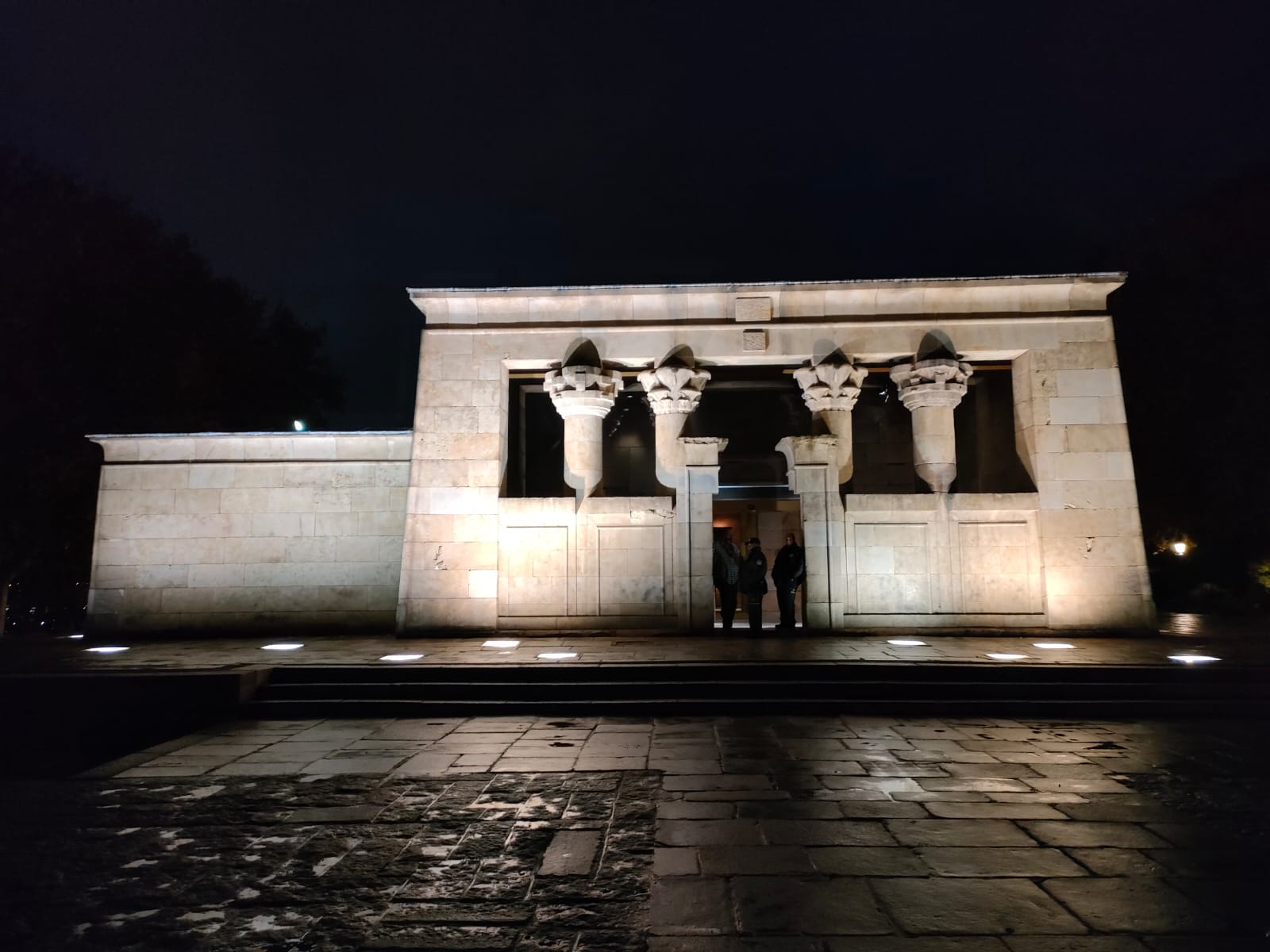 Questo suggestivo tempionon si trova, come verrebbe naturale supporre, in Egitto bensì a Madrid. Siamo nel 1960. La costruzione della Grande Diga di Assuan, minacciava di sommergere i Templi della Bassa Nubia . L’UNESCO, in stretta collaborazione con i governi d’Egitto e Sudan, convocò la comunità internazionale affinché ci si adoperasse per il salvataggio di questo straordinario patrimonio storico e artistico, provvedendo allo smontaggio e alla traslazione in posizione sicura, rispetto all’innalzamento del livello delle acque. Il tempio di Debod, destinato a essere donato ad un Paese straniero per il sostegno al progetto di recupero, fu il primo a essere smantellato e le sue sezioni depositate sull’isola di Elefantina, ad Assuan. Nel 1968, il governo egiziano deliberò la sua donazione alla Spagna, per l’aiuto prestato nel salvataggio dei Templi di Abu Simbel. Due anni dopo, i blocchi furono trasferiti ad Alessandria dove furono imbarcati verso la nuova destinazione. La ricostruzione a Madrid ebbe inizio nel 1970 e nei mesi seguenti si provvide a impiantare giardini e realizzare degli stagni; furono montati i blocchi nubiani e ricostruite fedelmente le parti mancanti. Nel luglio del 1972, il tempio fu aperto al pubblico.