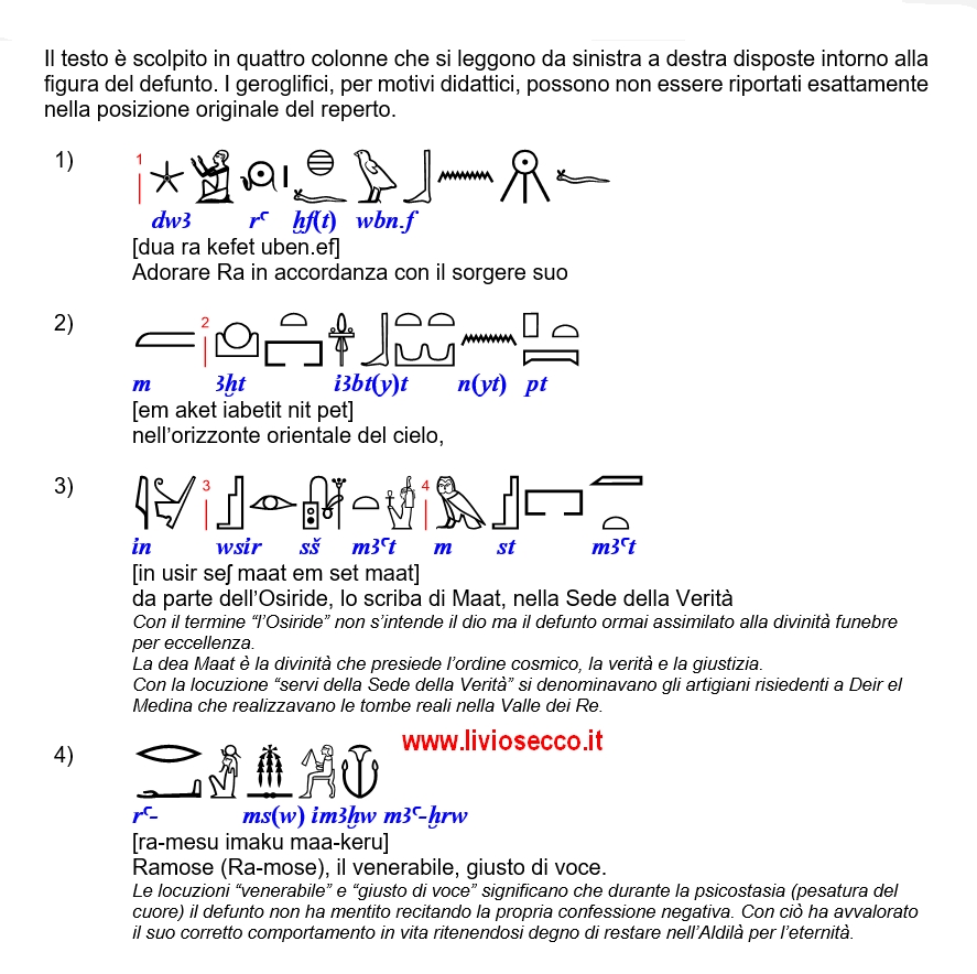 Questo lavoro è un’esercitazione dei Laboratori di Filologia Egizia che organizzo annualmente.
